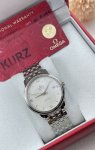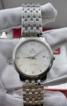 Omega De Ville Series Automatic Stainless Steel Men's Watch, 36.8mm Extra Large Dial, White Concentric Circle Dial, Classic Roman numerals, Sword-shaped Hands, Date Display, Sapphire Crystal, Powered by Omega Automatic Cal. 2500 Master Chronometer Certified Co-Axial Movement, Clearly Visible 89141105 Stamped on Case Back + Movement Eight-Digit Stamp.