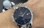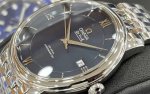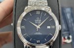 Omega De Ville series elegant automatic mechanical movement, daytime running light, waterproof, Swiss chronometer men's watch, 36.8mm, blue dial, stainless steel case, stainless steel bracelet.