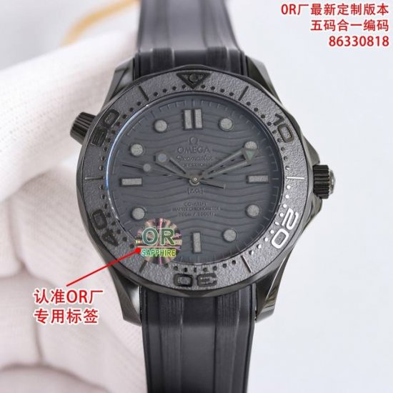 Omega Seamaster Black Knight Diver Watch Arrives, All Codes Matched DDD. The case is made of 316L stainless steel and features the only ceramic unidirectional rotating bezel in its class. The pressure relief valve on the side of the case is identical to the original, with a diameter of 43.5mm. The bezel uses an imported ceramic bezel with Super-Luminova luminous coating, providing blue and green dual-color luminescence. The green luminous minute hand, combined with the green luminous dots on the bezel, is used for diving oxygen countdown. The imported rubber strap comes with an original buckle. Adhering to the principle of practicality and continuous improvement, this watch has once again reached new heights!