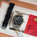 Omega Seamaster Planet Ocean 300M Co-Axial Master Chronometer 42mm Diver's Watch. Top-tier version, supports any comparison! Features the same 8800 mechanical movement as the original, with a vortex-shaped balance wheel identical to the original! Stainless steel case with brushed finish and partial polishing. Ceramic bezel with white enamel diving scale, ratcheted countdown bezel rotating unidirectionally counter-clockwise. Domed sapphire crystal with anti-reflective coating, polished ceramic dial with laser-engraved wave pattern, date window at 6 o'clock, skeletonized hands and embossed hour markers with rhodium plating and Super-Luminova luminous coating. Multi-layered waterproof screw-down crown with a conical helium escape valve. Stainless steel brushed bracelet, with the same two-side screws and central independent retaining bar design as the genuine product, folding double push-button clasp, and push-to-adjust micro-adjustment extension. Transparent case back clearly shows the beautiful movement in action. The case back, hang tag, and warranty card all match. Secondly, this is a dive watch, so it has all the essential functions: stylish luminous hands, deep water resistance, and a heave valve. What I really want to talk about is the feel of this watch on the wrist. The Seamaster feels more natural and comfortable on the wrist; the connection between the wrist and the watch case is incredibly strong from the first touch! A good watch requires a perfect design and high-quality materials to showcase its value! Highly recommended, definitely worth buying! Comes with a top-quality wooden box and original factory packaging.