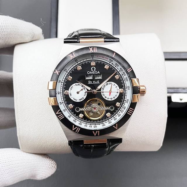Platinum Omega - Hot New Arrival. Featuring a fully automatic mechanical movement, 316L stainless steel case, simple, stylish, elegant, and prestigious. Mineral-reinforced glass crystal, genuine leather strap. A top choice for sophisticated men, suitable for both business and casual occasions. Diameter 40mm, Thickness 12mm. Actual product photos, no photo editing.