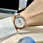 Real shipping photos. Omega's latest hot-selling model, featuring a skeletonized tourbillon dial, natural mother-of-pearl dial, and clearer numerals. It also includes a ceramic strap, stainless steel case and bracelet, and a design embodying the beauty, tranquility, romance, and freshness of the sun, moon, and stars. Size: 34mm.