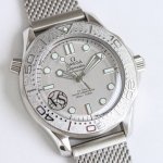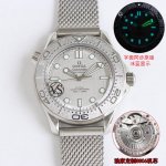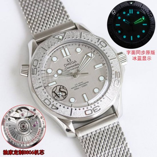 Omega 007-Seamaster Diver 300M, a new 300m no-date model! The bezel is identical to the genuine product, featuring an aluminum bezel with ice-blue luminous markers. The finely polished mesh bracelet has end links matching the original! Attention to detail! The case is made of 904L stainless steel, polished and shiny, durable, wear-resistant, and oxidation-resistant, maintaining its pristine appearance even after long-term wear! The hand-polished sapphire crystal glass is bright and scratch-resistant, unlike ordinary glass with a coating! The