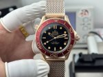 Sj's rubber and steel strap watch, model 1890 DDD, is a new Omega N9, model 007. It features a stunning fusion of bronze gold and burgundy red, a Seamaster 300M with a metal Milanese bracelet, an aluminum bezel and dial, and a domed sapphire crystal, showcasing a blend of vintage and modern aesthetics. S1's exquisite recommendation: a men's mechanical watch DDD.