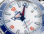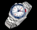 Tvs Omega Seamaster Cosmopolitan America's Cup 215.32.43.21.04 1 watch, 43.5mm in size, with a sophisticated and elegant steel bracelet (separate bracelet, not integrated), a blue ceramic unidirectional rotating bezel, and a ceramic dial engraved with "36th America's Cup". It features an exclusive, one-of-a-kind Cal.8900 movement for quick-set hour and date adjustment, and a black balance wheel with double T shock absorbers. Perfect size