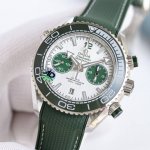 Tvs Production, Omega Seamaster Planet Ocean 600M Men's New Chronograph, Model 215.32.46.51.01 4 45.5Mm. A true 1:1 replica of the original, with all functions and appearance identical to the original. Features include: 3-digit minute hand (both hands reset to 0 simultaneously), 6-digit chronograph, 9-digit small seconds. Details: 1. Stainless steel case, grey dial, luminous hands and markers, double sub-dials chronograph with date display, grey ceramic unidirectional rotating bezel, grey sports strap with folding clasp. 2. Powered by the new 9900 automatic chronograph movement, featuring double-T shock resistance and Omega's unique black balance wheel. Synchronizes with the original's ultra-long 72-hour standby time. All chronograph functions are replicated from the original. 3. The steel bracelet is made of 316L stainless steel. The intricate polishing process and meticulous craftsmanship create a perfect replica exclusively for watch enthusiasts: a classic refined by time