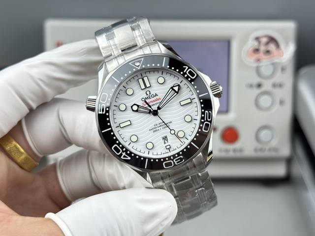 White-Gold DDD Or-Factoy will begin a new chapter in the legendary replica watch series. This cutting-edge Omega Seamaster 300M watch is crafted from imported 316L stainless steel, with a high-density Korean ceramic bezel adorned with white enamel diving scales. The dial is also made of polished ceramic, decorated with laser-engraved wave patterns. The 42mm case features a finely brushed finish. The steel bracelet is hand-polished step by step, making it the first on the market to achieve the same finish as the original. The bracelet has a chamfered back and is interchangeable with the original. The fluoroelastomer strap is smooth and substantial, and the spring bars are compatible with the steel bracelet. The sapphire crystal is produced using the Werner process, also known as the flame fusion process. It has a Mohs hardness of 9, ensuring excellent transparency at all times. The watch is equipped with an exclusively developed and customized replica 8800 integrated movement, which has undergone months of testing and proven its stable quality. This timepiece, crafted with great difficulty, is a tribute to watch enthusiasts.