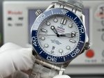 White-Gold DDD Or-Factoy will begin a new chapter in the legendary replica watch series. This cutting-edge Omega Seamaster 300M watch is crafted from imported 316L stainless steel, with a high-density Korean ceramic bezel adorned with white enamel diving scales. The dial is also made of polished ceramic, decorated with laser-engraved wave patterns. The 42mm case features a finely brushed finish. The steel bracelet is hand-polished step by step, making it the first on the market to achieve the same finish as the original. The bracelet has a chamfered back and is interchangeable with the original. The fluoroelastomer strap is smooth and substantial, and the spring bars are compatible with the steel bracelet. The sapphire crystal is produced using the Werner process, also known as the flame fusion process. It has a Mohs hardness of 9, ensuring excellent transparency at all times. The watch is equipped with an exclusively developed and customized replica 8800 integrated movement, which has undergone months of testing and proven its stable quality. This timepiece, crafted with great difficulty, is a tribute to watch enthusiasts.