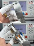 White-Gold DDD Or-Factoy will begin a new chapter in the legendary replica watch series. This cutting-edge Omega Seamaster 300M watch is crafted from imported 316L stainless steel, with a high-density Korean ceramic bezel adorned with white enamel diving scales. The dial is also made of polished ceramic, decorated with laser-engraved wave patterns. The 42mm case features a finely brushed finish. The steel bracelet is hand-polished step by step, making it the first on the market to achieve the same finish as the original. The bracelet has a chamfered back and is interchangeable with the original. The fluoroelastomer strap is smooth and substantial, and the spring bars are compatible with the steel bracelet. The sapphire crystal is produced using the Werner process, also known as the flame fusion process. It has a Mohs hardness of 9, ensuring excellent transparency at all times. The watch is equipped with an exclusively developed and customized replica 8800 integrated movement, which has undergone months of testing and proven its stable quality. This timepiece, crafted with great difficulty, is a tribute to watch enthusiasts.