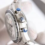 Omega Speedmaster Tvs Racing Chronograph features the in-house developed 9900 movement, with 12-hour and 60-minute counters at 3 o'clock. All functions and appearance are identical to the original, a masterpiece of Tvs craftsmanship. 1. All steel is made from imported Aisi316L special steel that undergoes a hardening treatment, achieving a hardness of 240HV. The case features a clear, delicate, white sand pattern with no pores, perfectly recreating the same material. 2. The transparent, arched sapphire crystal highlights the dial. 3. The matte dial is paired with white gold-plated studs, and the luminescent material is imported super-luminescent powder. 4. The Speedmaster Moon series is paired with a stainless steel strap and an imported cowhide strap, and the strap and ceramic bezel are interchangeable with the original. We may never go into space, but we can at least own an Omega Moonwatch in our lifetime.