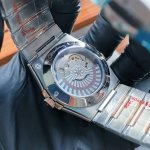 movement replica 8900 Co-Axial movement, transparent bottom caseback for a perfect view of the movement