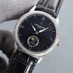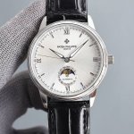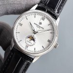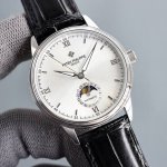 2630 Patek Philippe watch. A classic moon phase watch from the Patek Philippe collection, this timepiece beautifully combines a date display at 6 o'clock with the highly sought-after moon phase complication. The classic and timeless dial design, along with the striking polygonal lines sculpted in stainless steel or rose gold, is a hallmark of Patek Philippe. It features a Swiss Eta 2824-6 movement, a date display at 6 o'clock, and a large moon phase complication. The case diameter is 40*10 mm. It has a sapphire crystal, an Italian calfskin strap, and an original pin buckle.