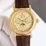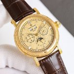 A new, elegantly designed, and stylish watch with a classic, vintage feel. Exquisite craftsmanship! A masterpiece of the year, this Patek Philippe classic super-complication multi-function perpetual calendar watch was meticulously designed by the team over two years, sparing no expense, pioneering spirit, striving for perfection, overcoming numerous difficulties, and breaking through multiple technical bottlenecks. The movement is an upgraded version of the Ch 29-535, ensuring stable quality! The dial features a moon phase display and date indicator at 6 o'clock. All perpetual calendar markings are excellent and easily legible. It houses a replica of the 324 SQ automatic movement, a refined version of the legendary 324 automatic movement. The classic Italian calfskin strap has a clear texture and excellent feel. It comes with a top-of-the-line Patek Philippe lantern buckle, compatible with genuine parts. The elegant Calatrava engraved case is highly distinctive, and the 42mm diameter is suitable for most men's wrists, matching the authentic look, making it suitable for both business and casual occasions. High-quality products from a major manufacturer! Feel free to repost! DDD