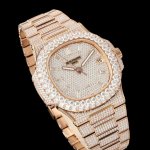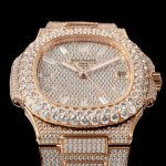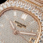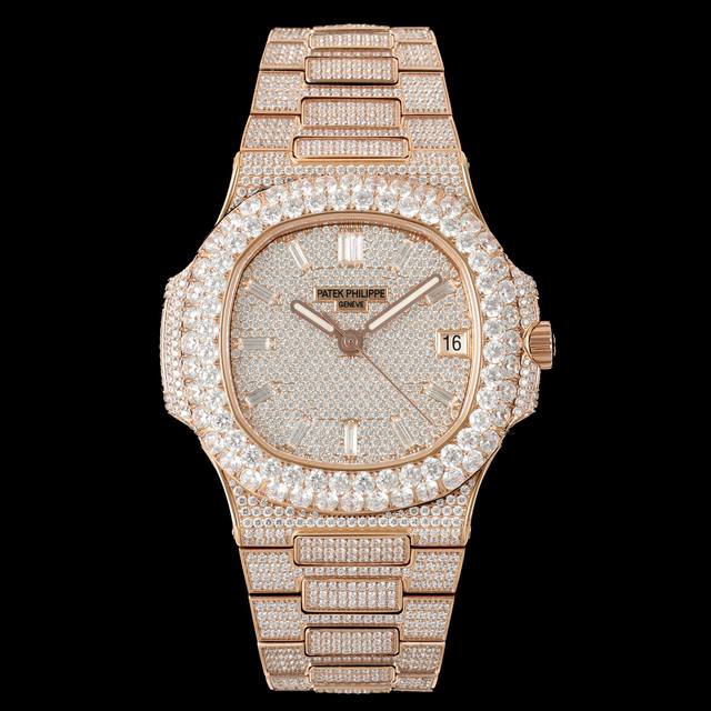 Amg Patek Philippe Nautilus 5711 White Gold Watch with a Full Diamond Bezel (DDD). This newly upgraded version features a double-row diamond bezel, perfectly combining the brand's world-renowned, exceptional jewelry-like diamond setting. This luxurious Patek Philippe watch boasts a unique and captivating design, showcasing the pinnacle of craftsmanship and symbolizing the status of successful individuals. DDD 1: Custom-made 9015 modified 324 automatic mechanical movement with a central large seconds hand! DDD 2: Dial: Pav