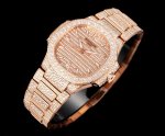 Gr Factory presents a limited-edition Patek Philippe 7118 Nautilus women's watch, crafted with meticulous attention to detail and featuring a full set of eight-heart, eight-arrow natural Orbold diamonds. A complimentary custom-designed travel box worth 370 is included. The watch features a custom 9015 movement modified to a 324 S automatic mechanical movement with a central seconds hand. The dial is pav