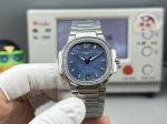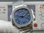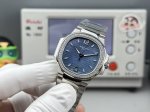 Gr, Patek Philippe, Diamonds +50 DDD Ladies' Nautilus 7018 1A-010 DDD Custom Gradient Blue Mother-of-Pearl Dial with Water Ripple Pattern DDD Thickness 8.6Mm Synchronized with Official DDD Movement 9015 Modified Cal.324 with Non-Stop Seconds Adjustment DDD