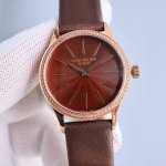 New Women's Patek Philippe Classic Series 4897 Watch, Highly Recommended! Classic charm, a classic reborn, the king of dress watches makes a stunning debut. Perfectly recreating the unique texture and minimalist style of this timepiece. Exquisite Details: 1. Equipped with a custom- modified Cal.215 automatic movement, boasting a 45-hour power reserve and a 28,800 vibrations per hour frequency. 2. The watch measures 33mm, a perfect size match, ensuring comfortable wear and a true 100% viewing experience. 3. Features a domed crystal identical to the original, specially coated with a double-layer anti-reflective coating. 4. The dial is adorned with 72 diamonds, and the hands and hour markers are decorated with a sunburst finish, resulting in a softer luster and a delightful timekeeping experience. Rhodium plating further ensures a level of shine and quality comparable to the original. This watch features a 50M waterproof Italian calfskin strap, exquisitely crafted with delicate edging, exuding a high-end feel. Paired with a Patek Philippe genuine pin buckle, it further enhances the watch's luxurious character. A JMF masterpiece. A work of meticulous craftsmanship by
