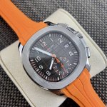 Rb2 Watch Model: 5968A-001. Features a 42.2mm stainless steel case, chronograph hands, peripheral rail-style markers accurate to a quarter second, and a 60-minute chronograph counter. The stainless steel case is paired with a rubber strap, exuding a stylish and sporty vibe. The case features the classic rounded octagonal bezel, which is further refined with beveling and polishing. The lugs, polished on the front and brushed on the sides, are slightly curved, creating a natural arc that ensures a comfortable fit on the wrist. Movement: Uses a custom-made replica of the original Cal.Ch28-520C automatic mechanical movement! Exquisite craftsmanship, internal and external matching the original, stable and durable! The 13mm case thickness is the thinnest on the market. Natural hypoallergenic rubber strap. Recommended by G5 for men's mechanical watches.