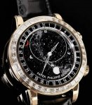 Patek Philippe - Grand Complications Celestial 18K Rose Gold Watch, 44mm case, bezel set with 38 baguette diamonds (approx. 4.27Cts), clasp set with 22 diamonds (approx. 1.13Cts), star chart display with star background, star map and Milky Way, Sirius and Moon at meridian time, hands and date display. Cal. 240 Lu Cl C automatic movement with a power reserve of 38-48 hours, 22K gold off-center mini rotor. *Patek Philippe Seal Certification. Ref: 6104R-0 01