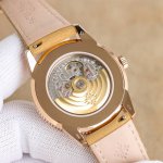 pp Factory 88g Weight DDD Patek Philippe Calatrava 5226 Series DDD Diameter: 40mm x 8.5mm The DDD is renowned for its simple and refined round case. Patek Philippe has redesigned this model, adorning the sides of the case with a Clous de Paris pattern, showcasing Patek Philippe's elegant style. A special case structure integrates the lugs with the case back, allowing the Clous de Paris pattern to fully cover the sides of the case. The DDD dial features a grained finish, inspired by the weathered texture of vintage camera bodies. This grainy texture is incorporated into the dial of the new 5226, adding detail to the watch. The classic three-hand design, with large luminous hands and hour markers, expresses a stronger sense of sportiness on top of its classic and elegant style. The DDD is equipped with the 26-330 automatic movement, featuring hour, minute, central seconds, and date display windows. Multiple interchangeable straps in various colors are decorated with embossed patterns and beige stitching. DDD pp Factory is dedicated to providing you with the closest possible hands-on experience and realistic wearing feel to the original.