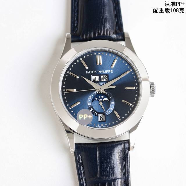 ppfactory Patek Philippe 5396 Series Chronograph with Weighted Caliber (Cm6) Dimensions: 38.5 x 11.2 mm Cal. 324S Movement Features: Date, Day, Month, and Moon Phase functions identical to the genuine article; sapphire crystal; blued steel hands; original lantern folding clasp. Truly replicates the feel and texture of the original on the wrist.