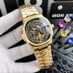 Brand: Patek Philippe - Nautilus, a prestigious high-end men's watch! Luxurious and sophisticated, a top-tier men's timepiece with a top-quality skeletonized mechanical movement, stable and durable 316L stainless steel, and a high-definition mineral crystal glass with a strong wear-resistant, three-dimensional design, unique star function, and a large 6-position tourbillon. Genuine leather strap ensures accurate timekeeping. Quality guaranteed. Diameter 42mm, thickness 12mm! New arrival, welcome to download pictures