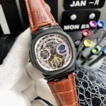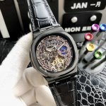 Brand: Patek Philippe - Nautilus, a prestigious high-end men's watch! Luxurious and sophisticated, a top-tier men's timepiece with a top-quality skeletonized mechanical movement, stable and durable 316L stainless steel, and a high-definition mineral crystal glass with a strong wear-resistant, three-dimensional design, unique star function, and a 6-position tourbillon. Genuine leather strap ensures accurate timekeeping. Quality guaranteed. Diameter 42mm, thickness 12mm! New arrival, welcome to download pictures