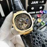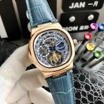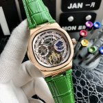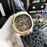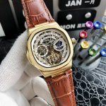 Brand: Patek Philippe - Nautilus, a prestigious high-end men's watch! Luxurious and sophisticated, a top-tier men's timepiece with a top-quality skeletonized mechanical movement, stable and durable 316L stainless steel, and a high-definition mineral crystal glass with a strong wear-resistant, three-dimensional design, unique star function, and a 6-position tourbillon. Genuine leather strap ensures accurate timekeeping. Quality guaranteed. Diameter 42mm, thickness 12mm! New arrival, welcome to download pictures