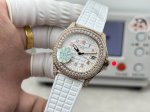 Round Diamond, Square Diamond, Full Diamond, 76g Weight Version, Patek Philippe Aquanaut 5068 Series, 9 o'clock Rotating Genuine Winding Wheel and Time Setting Function (Not Limited to Seconds), Size: 35.6mm x 8.5mm, Movement: Exclusive Integrated Cal.26-330 SC Movement, 9 o'clock Rotating Genuine Winding Wheel, Achieving the Same Size and Thickness as the Original and Time Setting Function (Not Limited to Seconds), Case: High-Gloss Molded Bezel and Middle Case, Dial: Three-Dimensional Oil-Pressed Gradient Sunburst Pattern with Finished Oil-Filled Super Luminous Numerals, Strap: Authentic Color Fluororubber Strap, Clasp: Upgraded to the Latest Skeletonized Caracalla Butterfly Clasp