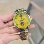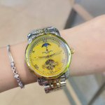 Stainless steel bracelet with butterfly clasp, Patek Philippe Ippe six-wheel automatic mechanical watch with sun and moon phase indicators at 12 o'clock. Made with the finest materials and meticulous craftsmanship! Features include super-strong mineral glass, vacuum plating, precision waterproofing, 42mm diameter, 12mm thickness. High-end, sophisticated, and a gentleman's first choice.