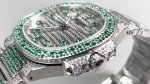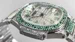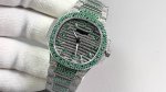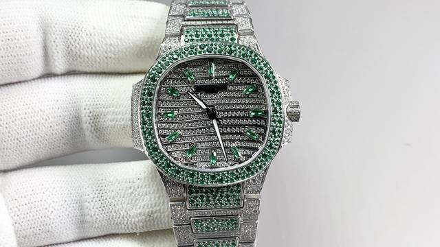 The Patek Philippe 7118 Nautilus, a classic timepiece crafted with meticulous attention to detail, has arrived in limited quantities! Three 7118 watches are available, each set with rubies, sapphires, and emeralds in different colors. Limited supply. The entire watch features eight hearts and eight arrows of natural Orbstone diamonds. A complimentary custom-designed travel box worth 370 is included. Watch: Custom 9015 modified 324 S automatic mechanical movement with a central seconds hand. Dial: Pav