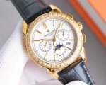 The Patek Philippe with white and gold diamonds makes a stunning debut. Its 41mm case diameter is suitable for most men's wrists, making it both business and casual. It has a strong visual impact, leaving a lasting impression, and its actual material is even more exquisite. Features include: 1. An imported 9100 multi-function movement, unlike ordinary domestic movements, offering zero-repair functionality and a 24-hour power reserve of 38-48 hours (day, week, month). 2. Imported 316L stainless steel with 18K high-quality vacuum plating. 3. A custom-designed square-scale leather strap . 4. A scratch-resistant sapphire crystal. 5. 30-meter water resistance. The Patek Philippe is simple yet sophisticated! Actual product photos show consistent quality.