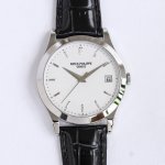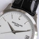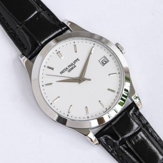 Tw A classic continues, Patek Philippe Classic Series 5296. Platinum V3 upgraded version! Thin yet sophisticated: 1. Refined case details, improved polishing quality, exclusively replicating the perfect proportions and unique texture of the genuine product. The date window size has been changed to match the genuine product, not a normal window! 2. The markers and hands are enhanced with the latest precious metal electroplating technology, resulting in a more outstanding effect! 3. The "dome-shaped" slightly convex sapphire crystal is identical to the genuine product, with a clear and transparent effect for easy time reading. Leading the era of integrated movement, it adopts a customized Cal.9015 modified 324 movement, thinner, more stable, and more authentic. Classic Italian calfskin strap with clear texture and superior quality. The pin buckle is neatly polished and shiny, compatible with the original without any problems. So noble, so classic and timeless, once you own it, you'll want nothing more!