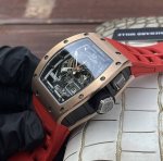 Richard Mille RM 1 Series Automatic Mechanical Movement 40X50X16Mm, Blue Luminous Crystal, Unique Skeletonized Dial, Luminous Dial, Hands, Rubber or Nylon Strap, Folding Clasp. Conformist? Understated and unchanging? This has never been Richard Mille's worldview.
