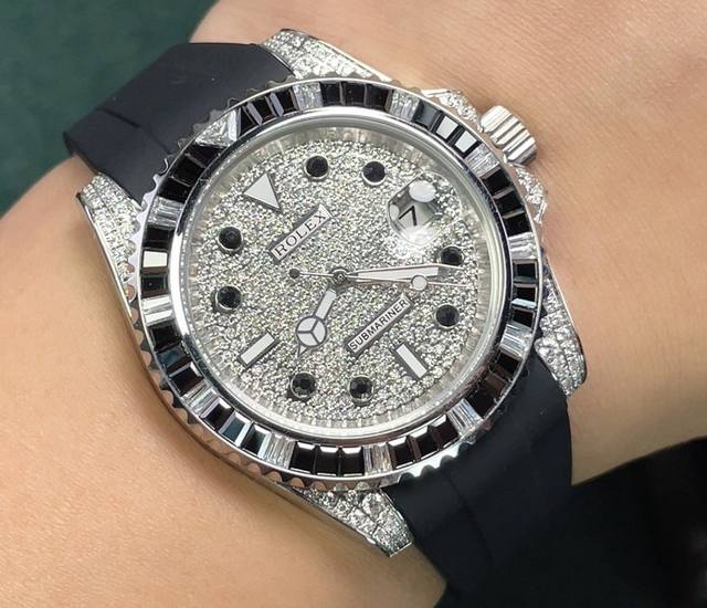 A top-tier Rolex timepiece, a must-have for those who dislike seeing the same Submariner everywhere. Based on the classic Rolex Submariner, this watch features a modified bezel and is set with top-quality natural cubic zirconia, boasting exceptional brilliance