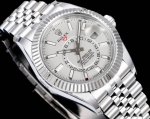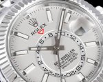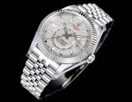 Ar+ Factory proudly presents the Rolex Sky-Dweller 200g Weight Edition. One watch, three straps. Case size: 42mm x 14.5mm. Bezel: Rolex Ring Command fluted bezel with rotating bezel for month adjustment; scratch-resistant sapphire crystal with anti-reflective Cyclops lens for magnified date. Straps: 316L Oyster bracelet with three or five links, Oyster clasp with 5mm Easylink extension system. Dial: Enamelled sunburst finish, 12-hour markers, red dot month display. Movement: Powered by the automatic mechanical Caliber 9002. Ar+ Factory offers you the most diverse and enjoyable Sky-Dweller wearing experience.