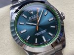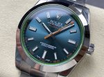 C+ Rolex Milgauss series with green crystal lightning bolt, three codes matching, comes with NFC! Quality guaranteed! 116400 lightning hand, green crystal, 904L top version, blue dial, green dial! Antimagnetic double case back! Synchronized green sapphire crystal, custom-made new solid-hand 3131 integrated movement, size: 40mm, made of Oystersteel forged steel, belonging to the 904L steel category. This superalloy is widely used in high-tech, aerospace, and chemical industries, and therefore naturally possesses high corrosion resistance. Oystersteel is not only very durable but also easy to polish, and its beauty remains undiminished even in the most extreme environments. Electric blue dial, green sapphire crystal paired with an electric blue dial, complementing the iconic lightning bolt-shaped seconds hand. Rolex Milgauss pays tribute to science! Look for watch serial number 6R9999V6, three codes matching, comes with NFC card, genuine and original. DDD