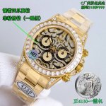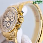 New, new, new! Clean US version Daytona Eye Of The Tiger watch with Dandong 4130 movement and integrated movement. "Original details of the Tiger's Eye, exquisite workmanship, watch serial number, 218Wf999." The Daytona 116589Tbr features a black lacquered dial with diamonds, resembling tiger stripes, hence its nickname "Eye Of The Tiger" among watch enthusiasts. This high-end Daytona, launched by Rolex at Baselworld, is a special edition. Such special editions are not officially displayed on the website or in retail stores. Case diameter: 40mm, movement model: Dandong 4130, functions: chronograph, antimagnetic. White gold Tiger Eye, gold Tiger Eye, T-shaped diamond meteorite dial, T-shaped diamond bezel, mother-of-pearl diamond dial, equipped with: Dandong 4130 movement, size: 40mm. The little-known Tiger Daytona with a full gold dial featuring a tiger stripe pattern, later upgraded with full diamonds, is a new product from the Baselworld watch fair. The bezel is set with 36 T-shaped diamonds, and the diamonds on the dial and hour markers are of the same high quality. As an officially customized model, its luxuriousness is undeniable. The tiger stripe dial of the Daytona resembles the stripes on a tiger, and the black and gold combination emphasizes its masculine strength. Look for the Clean code 218Wf999. Wearing a tiger watch in the Year of the Tiger brings good fortune and power.