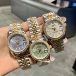 Rolex Datejust 31mm Watch: A Dazzling Declaration of 10 Square-Tooth Diamonds. On the wrist, Rolex, with its exquisite 31mm size, creates a double feast of elegance and luxury for women. Eleven square-tooth diamonds encircle the bezel, each a brilliant footnote to time, reflecting a sharp and captivating brilliance in the interplay of light and shadow, maximizing its sophistication. Whether it's the cool elegance of the ice-blue dial, the fresh vibrancy of the mint-green dial, or the warm grace of the mother-of-pearl dial, paired with the classic texture of the two-tone bracelet, this watch becomes the finishing touch to any outfit. It's a must-have for professional women, a focal point in social situations, and a timeless style engraved on the wrist, making every gesture a silent expression of taste and status.