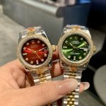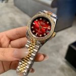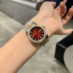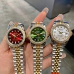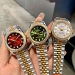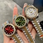 Rolex Datejust 31mm watch features a three-color dial, a timeless art piece with shimmering diamonds. The exquisite 31mm size embodies Rolex's ultimate interpretation of elegance. Eight diamond hour markers paired with a bezel of two square diamonds ensure every glimmer of light becomes a luxurious statement. The vibrant red dial is a confident statement for women, igniting a flame of style on the wrist; the lively green dial, fresh and dynamic like spring buds, infuses your outfit with vitality; the mother-of-pearl white dial, like moonlight falling on the wrist, exudes a warm and sophisticated feel. The classic two-tone bracelet perfectly blends luxury with everyday life. Whether for work commutes or social occasions, it becomes your style statement, allowing every wrist movement to radiate your unique charm.