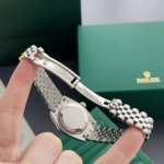 Rolex Datejust 31mm watch with diamond-set strap. A dazzling luxury feast in 316L stainless steel. The elegant 31mm size meets the ultimate collision of 316L stainless steel and a full set of white diamonds, creating a luxurious work of art on the wrist. From the deep and mysterious black dial to the fresh and elegant mint green dial, from the warm and lively mother-of-pearl white dial to the vibrant and eye-catching emerald green dial, each model features a full diamond bezel and diamond-set strap, maximizing its sparkle. The delicate texture of 316L stainless steel complements the brilliance of diamonds perfectly. Whether attending a high-end banquet or for everyday understated luxury, it can become your fashion symbol, making every wrist movement a visual feast of diamonds and stainless steel, showcasing your refined taste and extraordinary style .