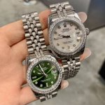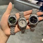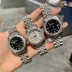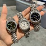Rolex Datejust 31mm watch with diamond-set strap. A dazzling luxury feast in 316L stainless steel. The elegant 31mm size meets the ultimate collision of 316L stainless steel and a full set of white diamonds, creating a luxurious work of art on the wrist. From the deep and mysterious black dial to the fresh and elegant mint green dial, from the warm and lively mother-of-pearl white dial to the vibrant and eye-catching emerald green dial, each model features a full diamond bezel and diamond-set strap, maximizing its sparkle. The delicate texture of 316L stainless steel complements the brilliance of diamonds perfectly. Whether attending a high-end banquet or for everyday understated luxury, it can become your fashion symbol, making every wrist movement a visual feast of diamonds and stainless steel, showcasing your refined taste and extraordinary style .