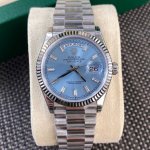 Rolex Day-Date_DDD Day-Date, the King of Classics DDD The genuine white gold version with an ice-blue diamond dial is here! The top-of-the-line version has a 36mm dial size! DDD It's identical to the genuine article! The watch weighs around 180 grams, giving it a substantial feel and superior texture. It's not a common market product; it supports any comparison and is guaranteed to not fade. The watch is equipped with a superb movement, featuring the same double date jump as the original, ensuring accurate and stable timekeeping. Its shock resistance and geometry allow the movement to maintain consistent operation in any position. Both the bracelet and case are made of 904L Rolex patented steel, which has high corrosion resistance, is not only very durable but also easy to polish, and its beauty remains undiminished even in the most extreme environments. It features a screw-down Twinlock double waterproof system with a water resistance depth of up to 100 meters, a Cyclops lens to magnify the date, and the classic Oyster crown with a concealed folding clasp. This series captures almost 80% of the essence of Rolex! Always synonymous with elegance and precise timekeeping, this gold watch perfectly embodies a fashionable spirit. A fusion of classic Rolex elements, a continuation of timeless style. DDD