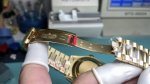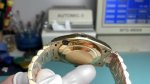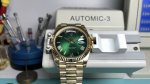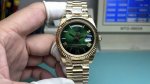 / Rolex Day-of-the-Day watch with Roman numerals and smoky green finish.