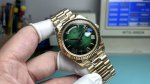 Rolex Day-of-the-Day watch with Roman numerals and smoky green finish.