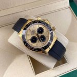 Rolex Daytona Gold! Movement uses 4131, 12.2mm thick! Original mold! Rolex Daytona Size: 40mm x 12.2mm! Functions: Hours, minutes, seconds, chronograph display. Movement: Compared to other watches on the market with a 7750 movement, ours is inferior in performance and stability! We use the original 4131 movement! Power Reserve: 72 hours. Crystal: Super crystal natural sapphire. Dial: Original custom gold panda dial! High quality and excellent craftsmanship, high-end customization! DDD Material: 904L stainless steel case, quick-release end links identical to the original, not a cheap, one-piece case from a small factory. DDD Strap: Stainless steel bracelet, quality guaranteed. DDD Bezel: Dedicated ceramic bezel with platinum coating. DDD Luminous Material: Swiss luminous paint, super strong luminescence. DDD Water Resistance: 100 meters. DDD Crystal: Flat sapphire crystal glass, scratch-resistant. DDD The effect is absolutely identical to the genuine product. DDD The 6 o'clock position has the same anti-counterfeiting crown as the genuine product; pay attention to details. DDD The clasp is made of 904L stainless steel, 1:1 replica, polished from individual parts. DDD The inner side is brushed with Rolex's steel stamp, and the outer clasp has the same safety ring as the genuine product; perfection in every detail! Available in black and white, with unbeatable aesthetics, a perfect choice. The black dial is sophisticated, mature, and stable. The gold dial with panda-eye chronograph sub-dials is suitable for both men and women. To be honest, the Rolex Panda Daytona may not necessarily appeal to men, but it definitely appeals to women. The gold and steel Daytona is really suitable for summer; the black and white dial is very eye-catching and photogenic. DDD comes with full packaging. The watch model, tag, and warranty card all match and are unique. The warranty card can be scanned via NCF verification. Returns and exchanges are supported if you are not satisfied and the protective film is not removed. Every watch undergoes rigorous testing, resulting in near-zero returns!