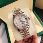 Rolex Ladies' Oyster Datejust! 31mm case diameter. Forged from 904L stainless steel, offering high corrosion resistance. The fluted case back, tightened with a special tool, ensures a complete seal. The winding crown features a Twinlock double waterproof system, securely screwed to the case for enhanced water resistance. The crystal is made of highly scratch-resistant sapphire crystal, and a Cyclops lens at 3 o'clock provides 2.5x magnification. The Lady-Datejust's waterproof Oyster case offers optimal protection for the high-precision movement! The 904L watch features a new double-link connection between the bracelet and bezel, and a concealed folding crown clasp that opens with the hinged Rolex crown logo.