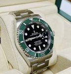 Rolex Submariner III (Green), nicknamed "Starbucks," is a new model released in 2020. The Oyster case has been improved, increasing from 40mm in the second generation to 41mm. It features the latest 3235 movement, increasing the power reserve to 70 hours. The dial returns to the style of the first-generation Green Submariner, with a green bezel and black dial, making it easier to match with everyday outfits. DM me if you're interested!