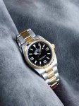 Sj's white and gold case Rolex XF3 Explorer series 36-40mm 2836 modified to 3230 with engraving, weighted case back, synchronized weight, bullet hands, ice blue luminous hands, original Ar sapphire crystal glass with anti-counterfeiting mark, synchronized Ar steel bracelet and case! No white showing! Exquisite quality, you'll know once you see it. Limited quantity, first come first served. S1 exquisite recommended mechanical watch