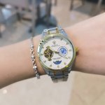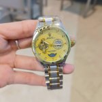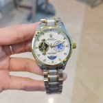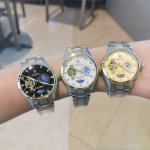 Stainless steel bracelet with butterfly clasp, Rolex 9-year-old automatic mechanical watch with sun and moon phase indicators at 6 o'clock during the day and moon phase indicators at night. Made with the finest materials and meticulous craftsmanship! Features ultra-strong mineral glass, vacuum plating, and precision water resistance. Diameter: 40mm, thickness: 12mm. High-end, sophisticated, and a gentleman's first choice.